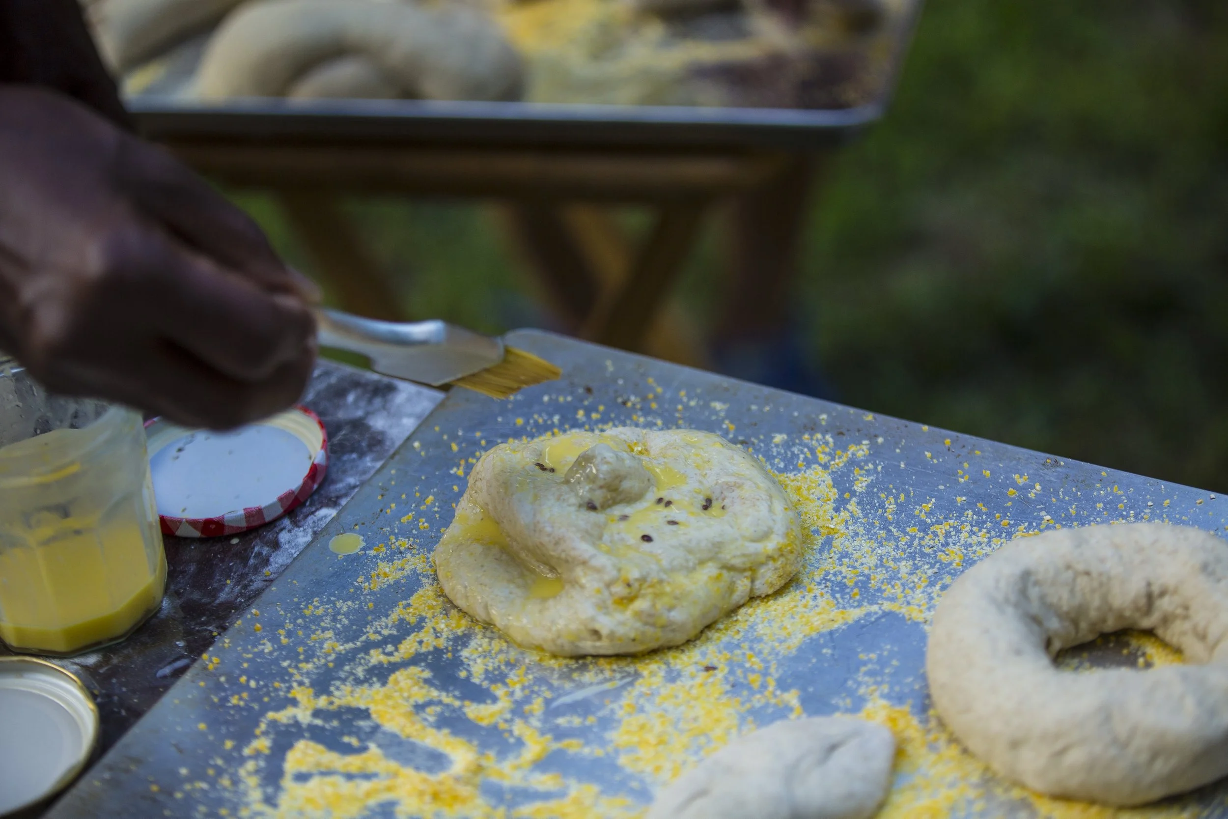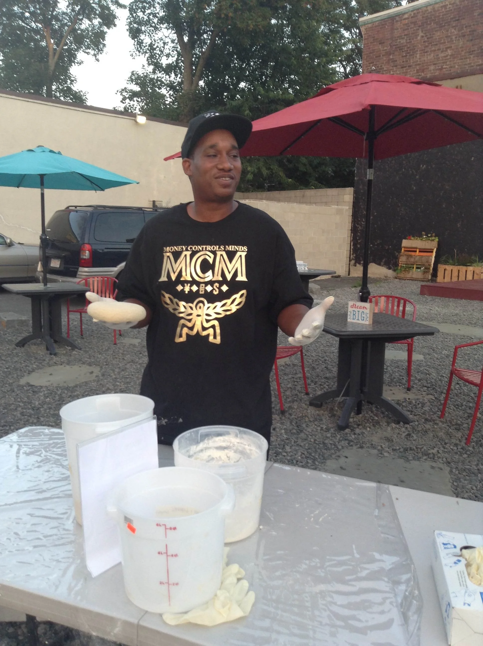 Participants baked & shaped bread from previous two parties, mixed & kneaded new dough for the next day’s party, and talked about neighborhood-specific needs for arts and artists to thrive in Mattapan neighborhood