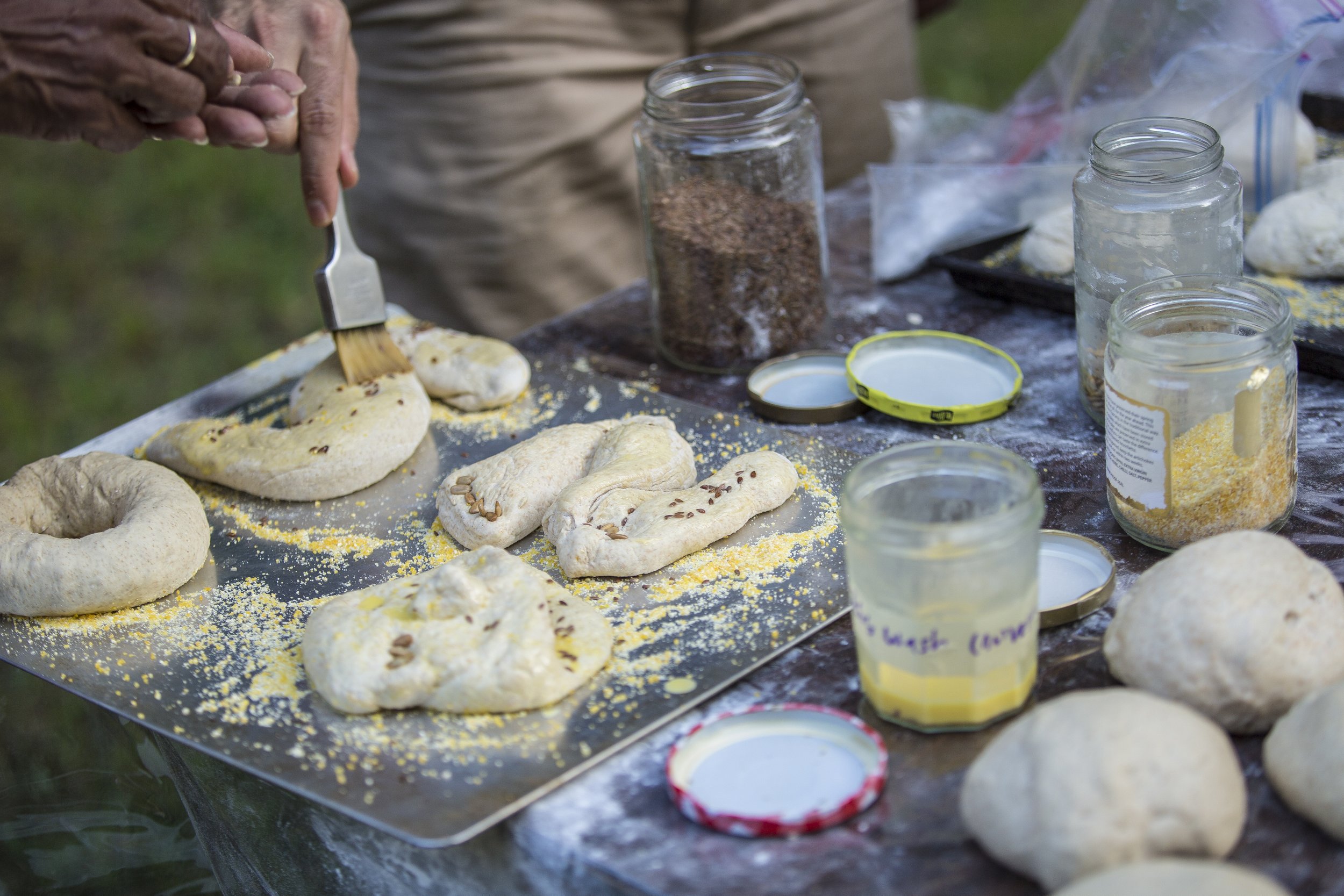 Shaw Pong created, curated and co-hosted “What Artists Knead”, a series of five breadmaking parties for local artists in five different neighborhoods of Boston (Dorchester, Jamaica Plain, Mattapan, Roslindale and Roxbury) over five consecutive days to invite individual artists to network and participate hands-on in breadmaking and dialogue about formation of Boston’s cultural plan. Bread was kneaded at one party, shaped at the next, and eaten at the third, creating an edible chain of connection from neighborhood to neighborhood, and conversation to conversation. A portable outdoor oven was created and transported to two of the parties which were held in outdoor locations. Summer 2015.