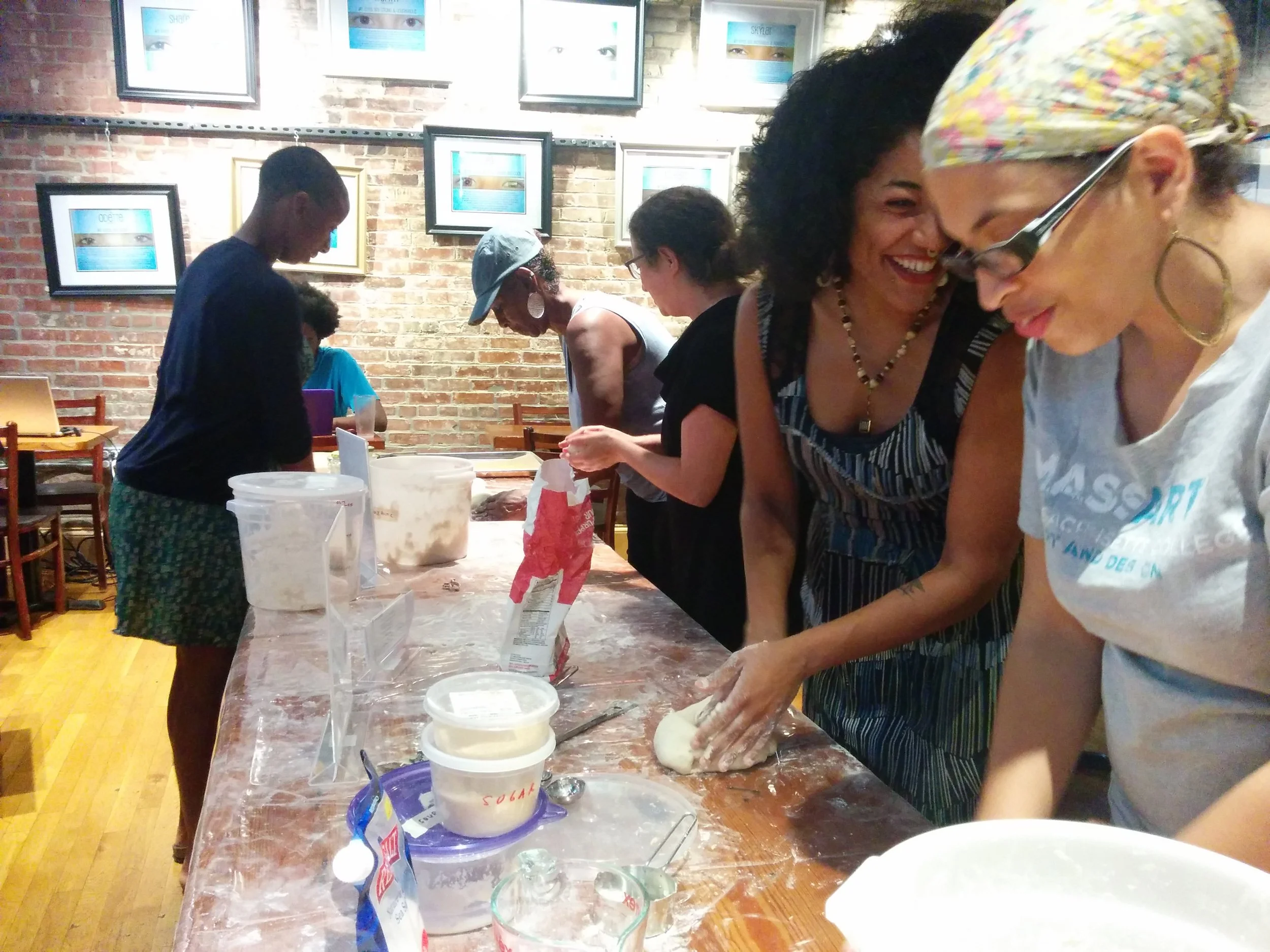 Fifth and final party was celebrated with breadmaking and dialogue at the historic Haley House Café, a beloved neighborhood gathering place for artists, organizers and activists.