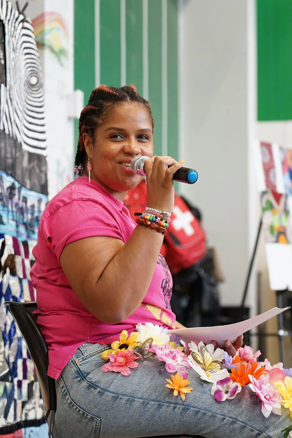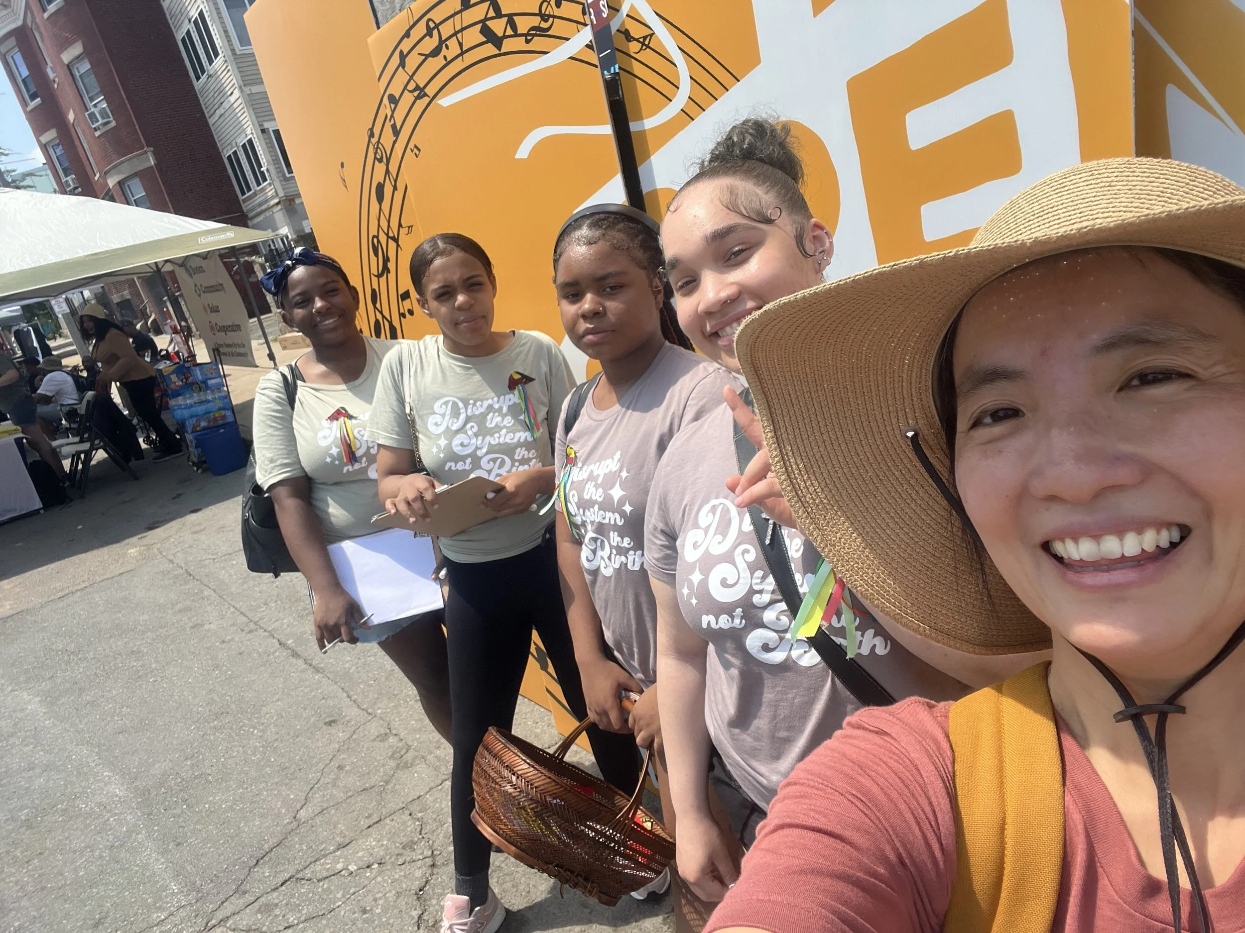 5 individual artists, midwife, and organizers including textile artist L’Merchie Frazier, poet/artist Zahirah Nur Truth, elder midwife Dr. Jo-Anna Rorie, community organizer Nayomi Santiago, photographer Stefanie Belnavis.